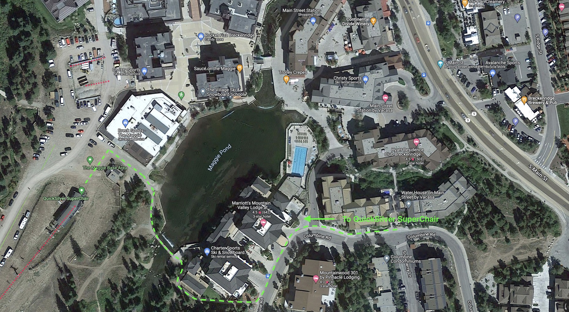 ( a quick 5 minute walk around Maggie Pond to get to the lift).